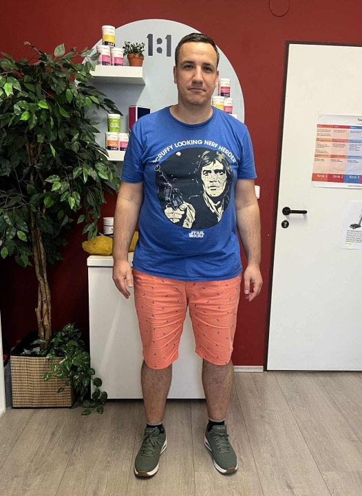 Během programu jsem se dostal na váhu, kterou jsem měl, když jsem hodně sportoval před lety a cítím se teď rozhodně o dost lépe, než před půl rokem. Před začátkem diety jsem se bál, že budu mít velký pocit hladu a bude těžké tu dietu dodržovat, ale víceméně jsem neměl za celou dobu žádnou krizi a navíc produkty z programu diet 1:1 jsou velmi chutné. Již po pár týdnech v programu jsem se cítil o mnoho lépe a kilogramy šly rychle dolů. Nyní budu mít připravený jídelníček od paní Moniky, již bez produktů a věřím, že si pohlídám svoji váhu a zdraví, jelikož už o svém stravování dokážu také přemýšlet.