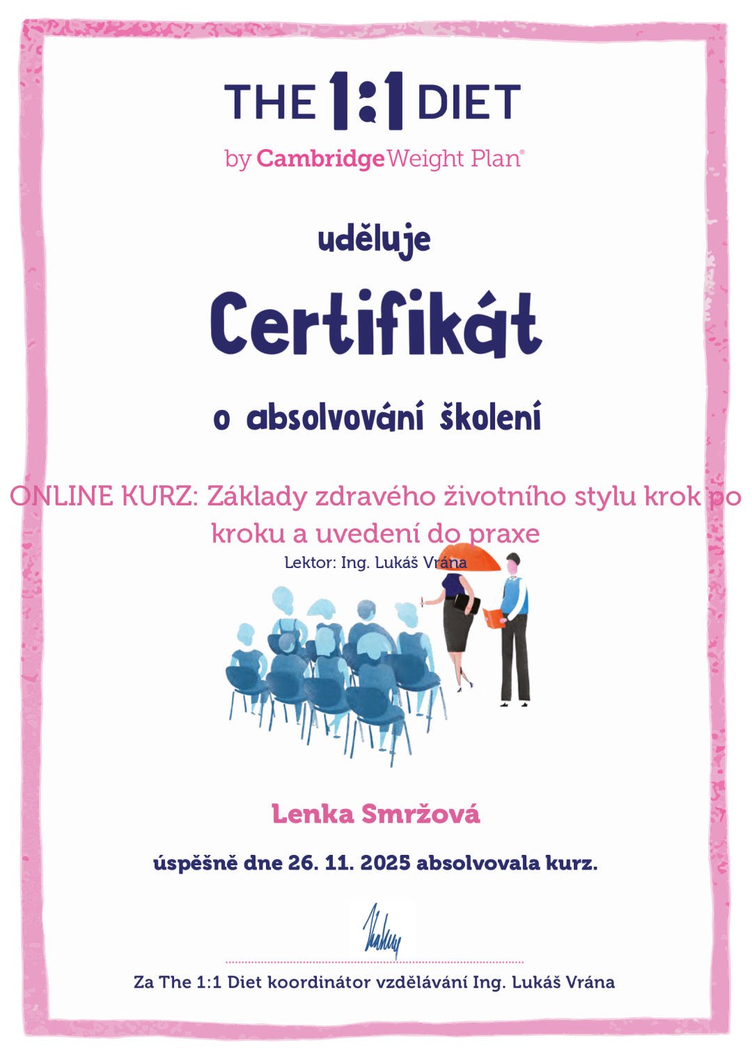 Domluvila jsem si s ní schůzku a rozhodla se, že už po několikáté vyzkouším další dietu. Byla jsem velmi pesimistická, a proto mě mile překvapilo, když moje váha po čtrnácti dnech šla o několik kg dolů. Během několika měsíců jsem pomocí komplexního programu The 1:1 Diet a za velké podpory paní Lenky Smržové zhubla o více než 40 kg, aktuálně jsem o 50 kg lehčí (srpen 2019). Naučila jsem se novým stravovacím návykům a začala jsem mít ráda sport. I když už je to několik měsíců, co už nejsem na tomto programu, stále si svoji váhu udržuji a jsem velmi spokojená. Mé díky patří programu The 1:1 Diet a paní Lence Smržové.