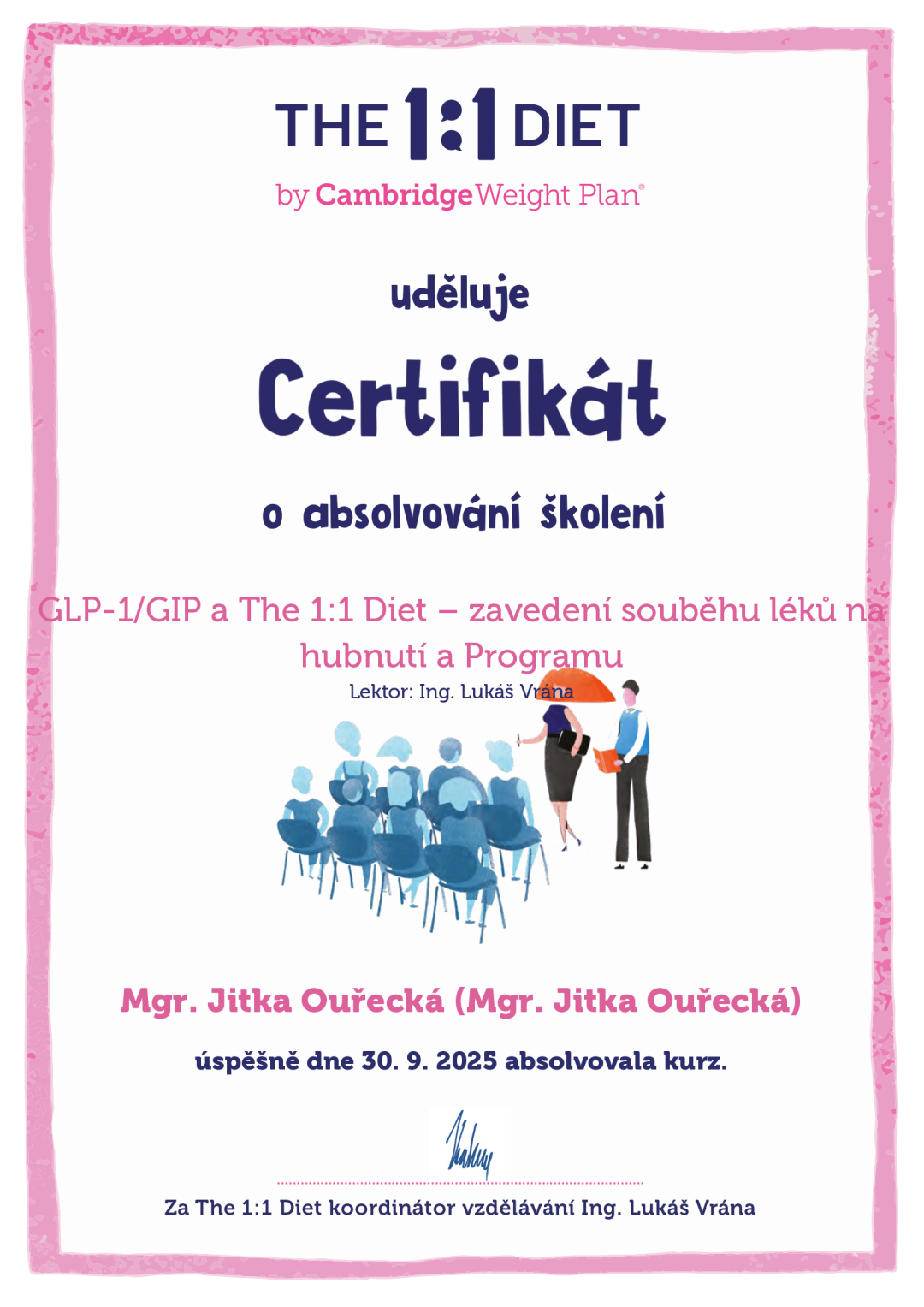 Program The 1:1 Diet by Cambridge Weight Plan staví na třech základních pilířích, z nichž jedním je podpora výživového poradce. Existuje několik studií, které prokazují, že jedním z faktorů ovlivňujících úspěšnost redukce je správné vedení. Jedině při pravidelných konzultacích, je možné klienta účinně motivovat a podporovat po celou dobu programu – díky zázemí a radám vyškoleného odborníka i pravidelnému měření složení těla na bioimpedančním přístroji.